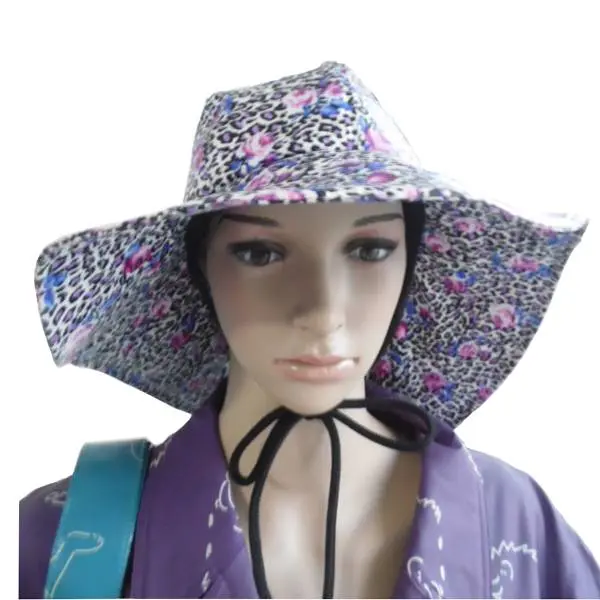 Style No. : LA2020 Product name: 2020 trendy lady rain hat Style :LA2020 trendy lady rain hat Description:Eco-friendly print PU fabric,waterproof,adjustable hood,lining,seam welded